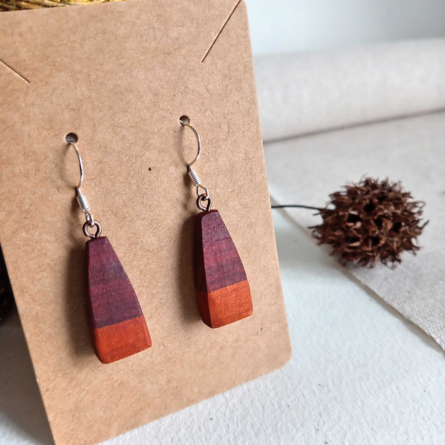 Boucles d'oreilles multicolores, en bois faites main, pour ajouter une touche de nature et d'élégance à son style. Soigneusement créée pour offrir un bijou unique et personnalisé.