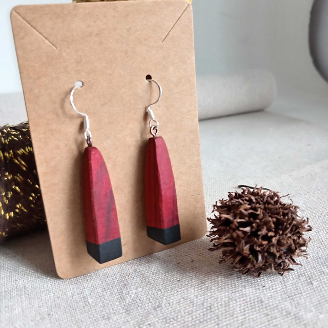 Boucles d'oreilles multicolores, en bois faites main, pour ajouter une touche de nature et d'élégance à son style. Soigneusement créée pour offrir un bijou unique et personnalisé.