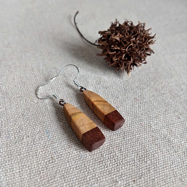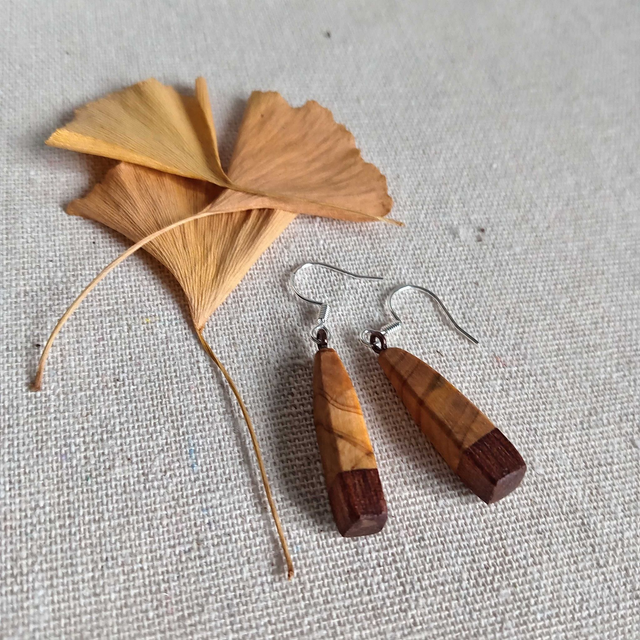Boucles d'oreilles multicolores, en bois faites main, pour ajouter une touche de nature et d'élégance à son style. Soigneusement créée pour offrir un bijou unique et personnalisé.