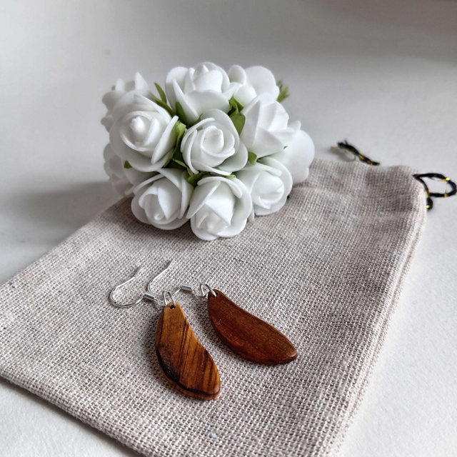 Boucles d'oreilles, en bois faites main, pour ajouter une touche de nature et d'élégance à son style. Soigneusement créée pour offrir un bijou unique et personnalisé.