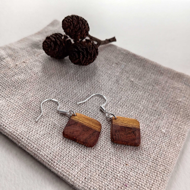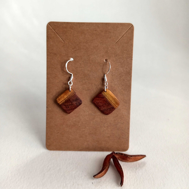 Boucles d'oreilles multicolores, en bois faites main, pour ajouter une touche de nature et d'élégance à son style. Soigneusement créée pour offrir un bijou unique et personnalisé.