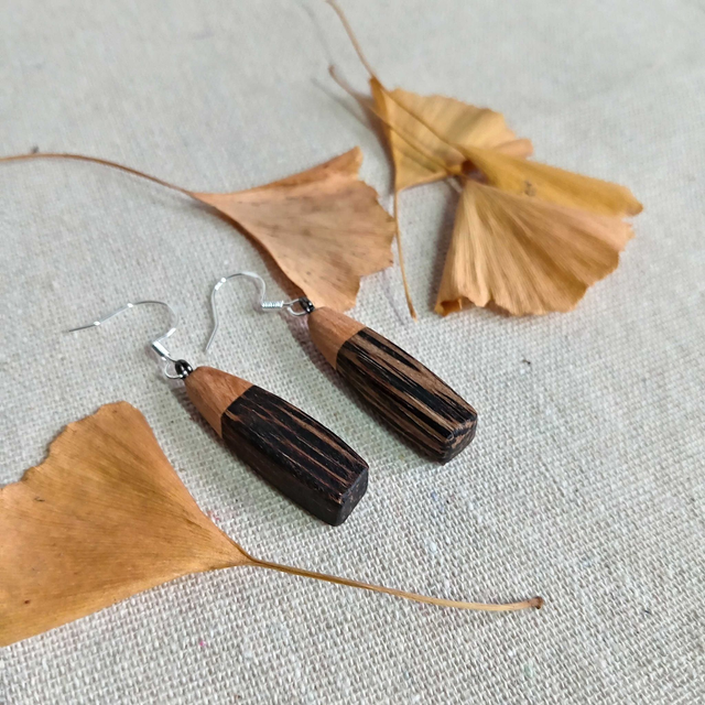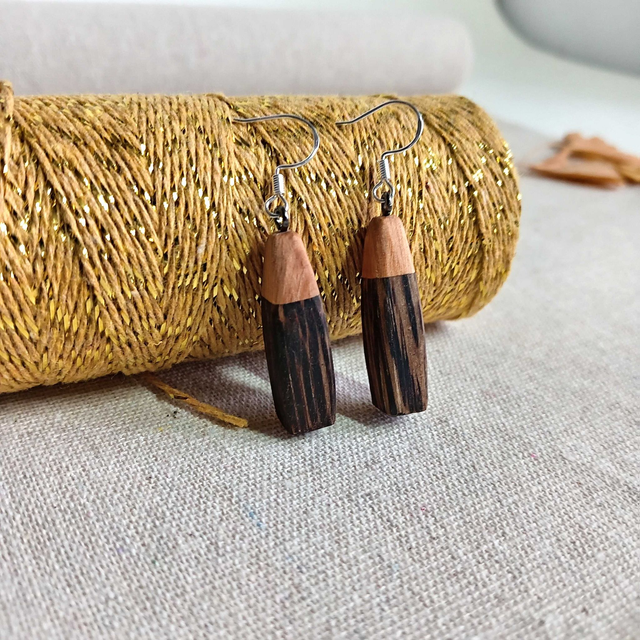 Boucles d'oreilles multicolores, en bois faites main, pour ajouter une touche de nature et d'élégance à son style. Soigneusement créée pour offrir un bijou unique et personnalisé.
