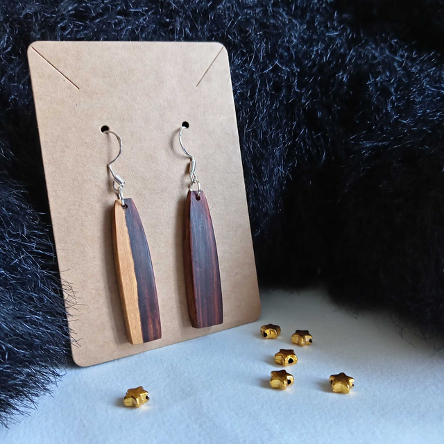 Boucles d'oreilles, en bois faites main, pour ajouter une touche de nature et d'élégance à son style. Soigneusement créée pour offrir un bijou unique et personnalisé.