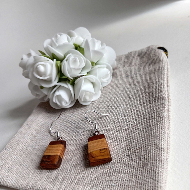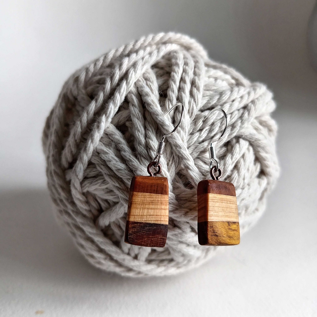Boucles d'oreilles multicolores, en bois faites main, pour ajouter une touche de nature et d'élégance à son style. Soigneusement créée pour offrir un bijou unique et personnalisé.