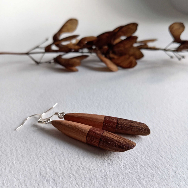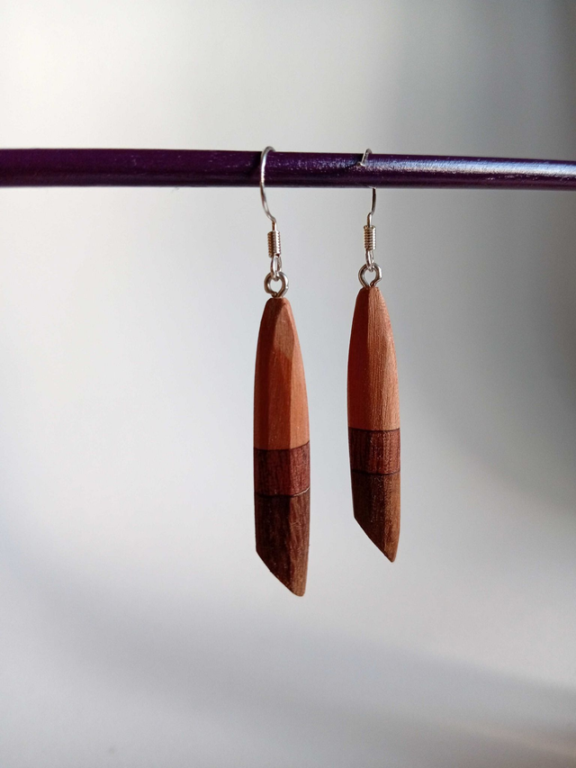 Boucles d'oreilles multicolores, en bois faites main, pour ajouter une touche de nature et d'élégance à son style. Soigneusement créée pour offrir un bijou unique et personnalisé.