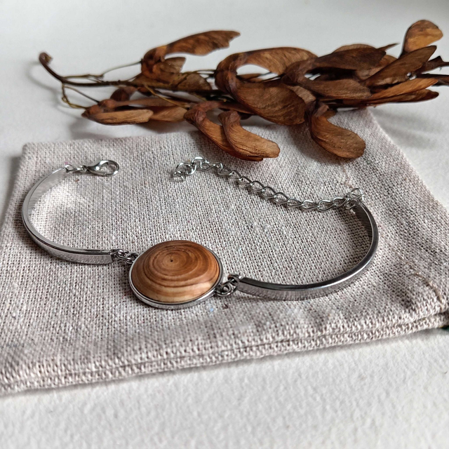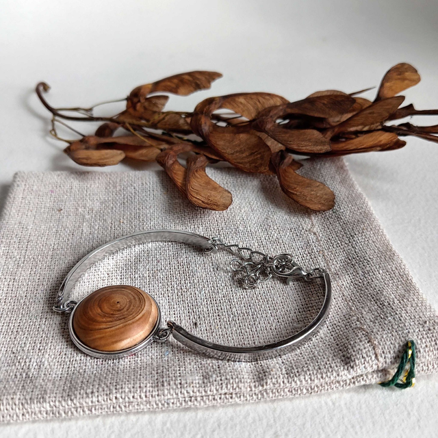Bracelet avec insert en bois de séquoia géant, pour ajouter une touche de nature et d'élégance à son style.