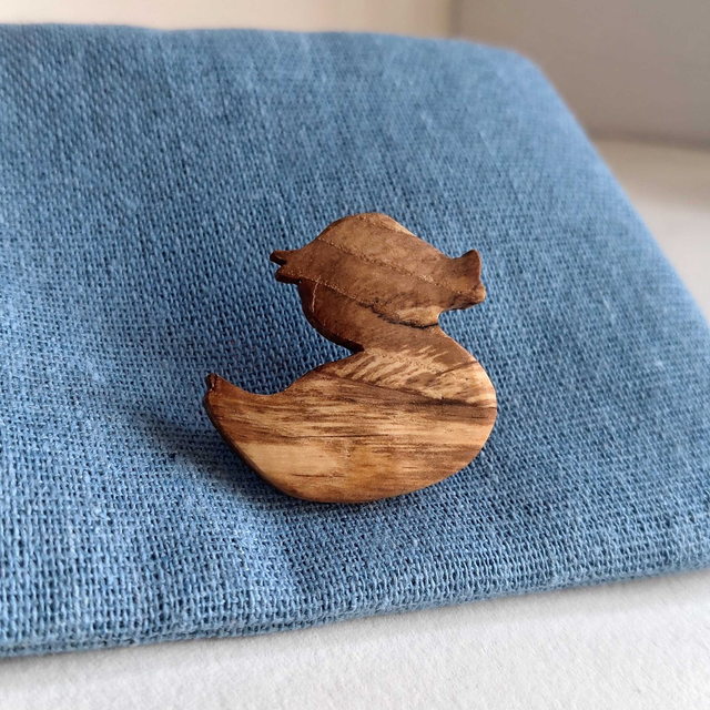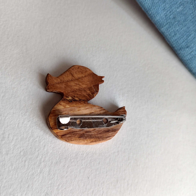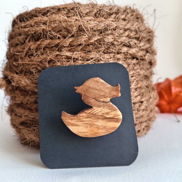 Broche, canard, en bois d'olivier, parfaite pour ajouter une note unique et éco-responsable à votre style.
