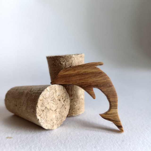 Broche, dauphin, en bois d'olivier, parfaite pour ajouter une note unique et éco-responsable à votre style.