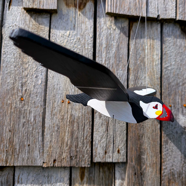Laissez-vous emporter par la poésie des grands espaces marins avec ce mobile macareux, entièrement fabriqué et peint à la main.