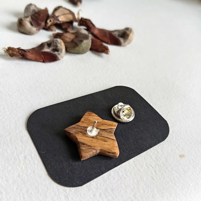 Un pin’s unique en bois d’olivier, alliant élégance naturelle et authenticité artisanale.