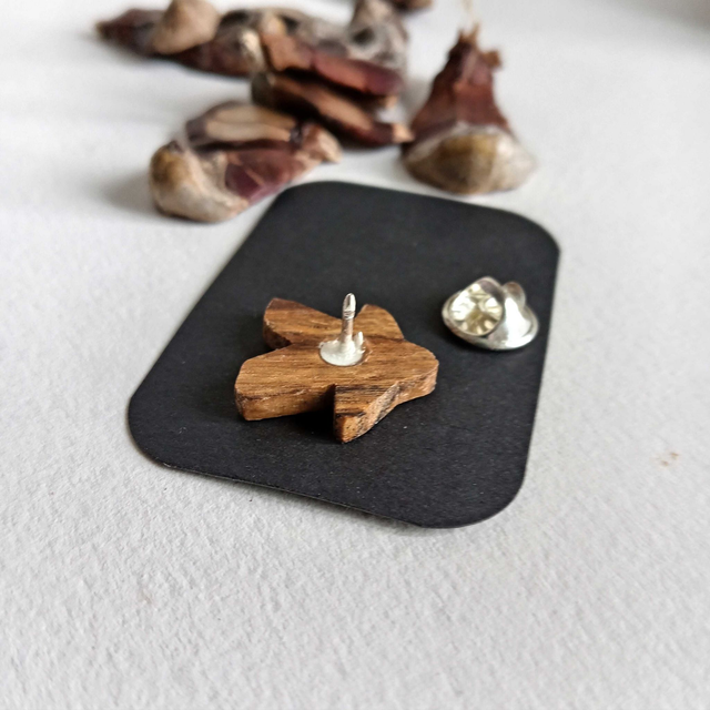 Un pin’s unique en bois d’olivier, alliant élégance naturelle et authenticité artisanale.