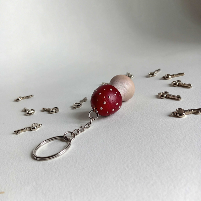 Ce porte clés en bois représente un charmant champignon amanite tue-mouche, peint avec soin par Lucy, une illustratrice talentueuse. Il est parfait pour ajouter une touche de nature et de fantaisie.