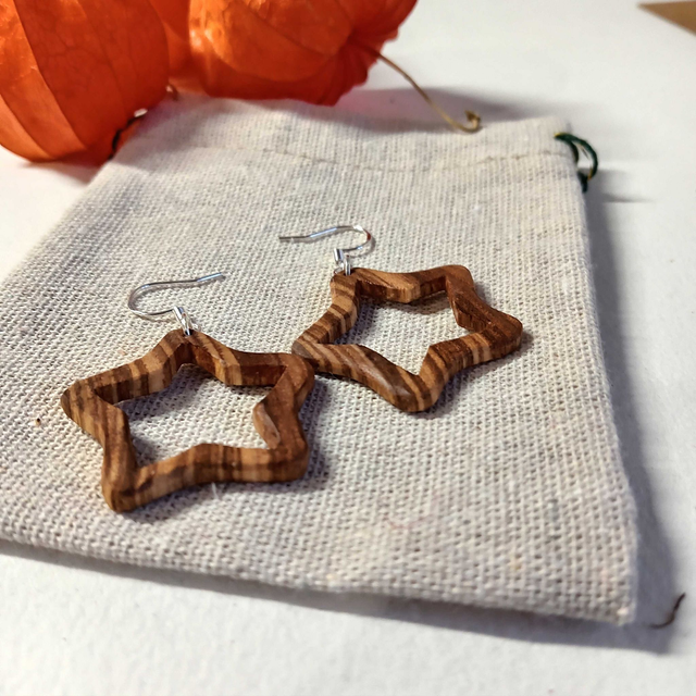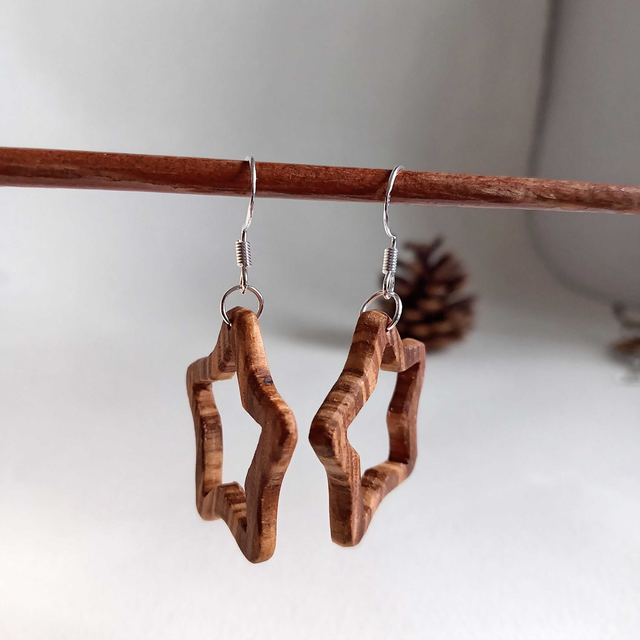 Boucles d'oreilles, en bois faites main, pour ajouter une touche de nature et d'élégance à son style. Soigneusement créée pour offrir un bijou unique et personnalisé.