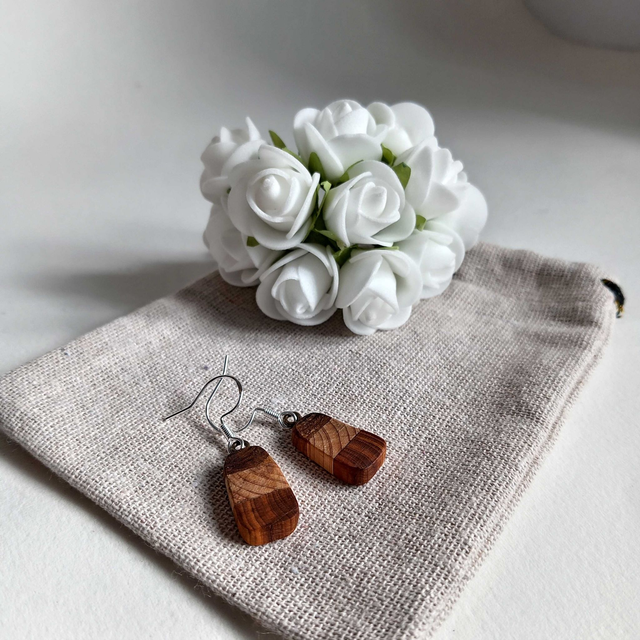 Boucles d'oreilles multicolores, en bois faites main, pour ajouter une touche de nature et d'élégance à son style. Soigneusement créée pour offrir un bijou unique et personnalisé.